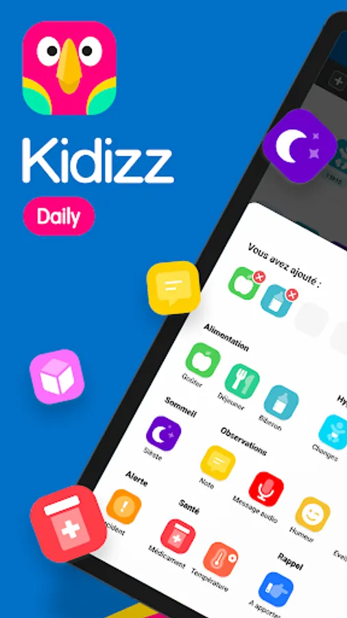Kidizz Daily allows you all types of daily reports with parents or only internally for your teams. A wide choice of reports is possible among the following themes, Food, Hygiene, sleep, pedagogy, health etc.