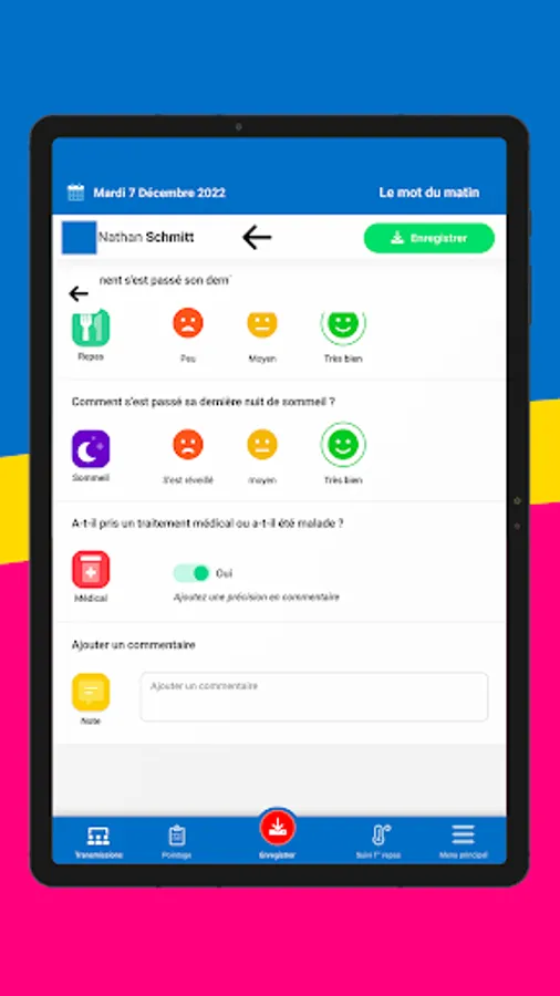 ➜ The "Word of the morning" by the creche teams In the morning, when welcoming the child to the creche note the "Word of the morning" which summarizes the parents' remarks.
