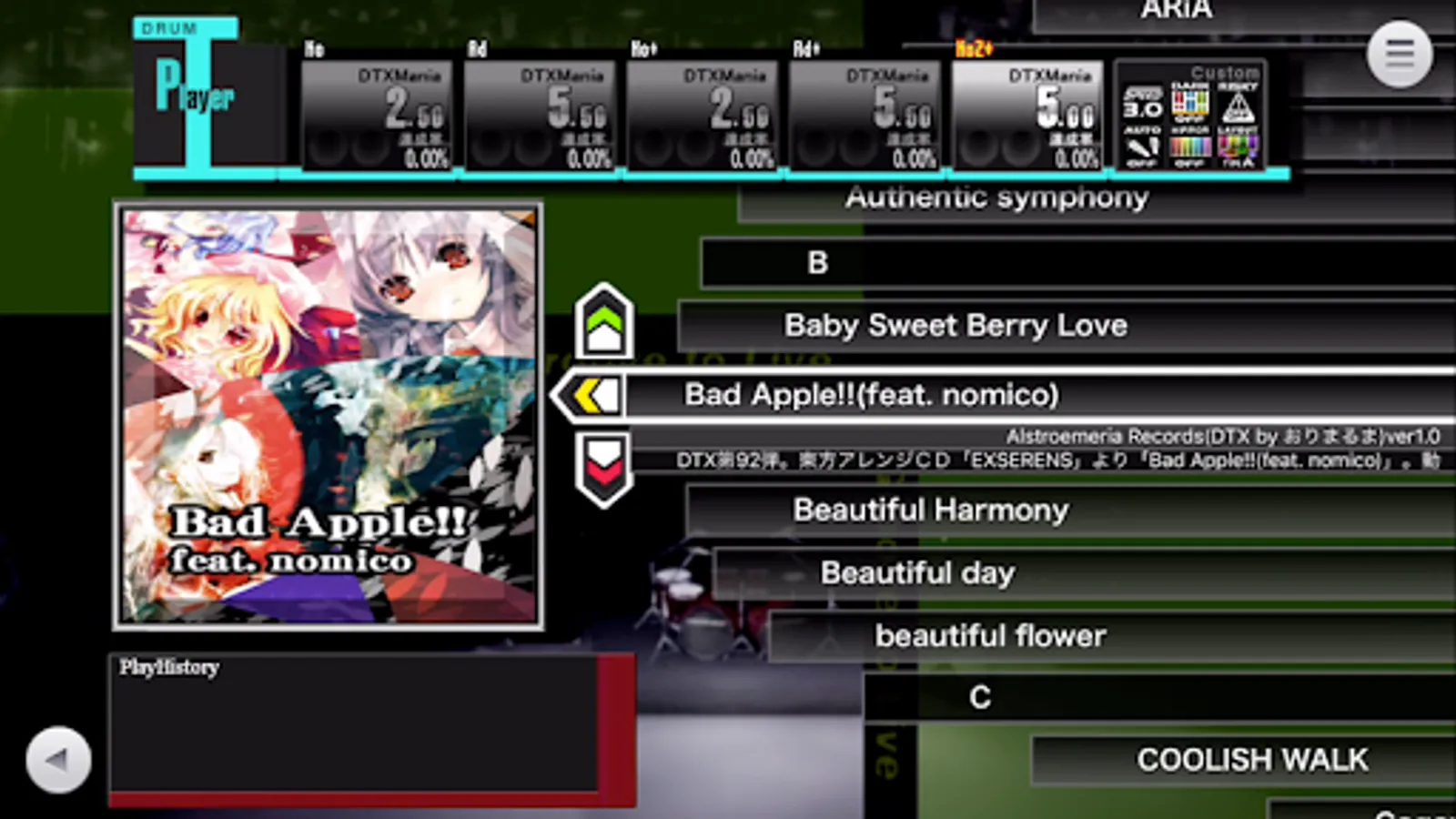 - It is necessary to correct synchronous deviation of BGM for each terminal. For all songs, please set the delay time from the setting screen. For each song, long press the jacket from the music selection screen and set the delay time.