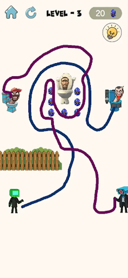 The skibidi toilet army are attacking camera man and his friends. Help them draw the line to reach toilet head and flush them away