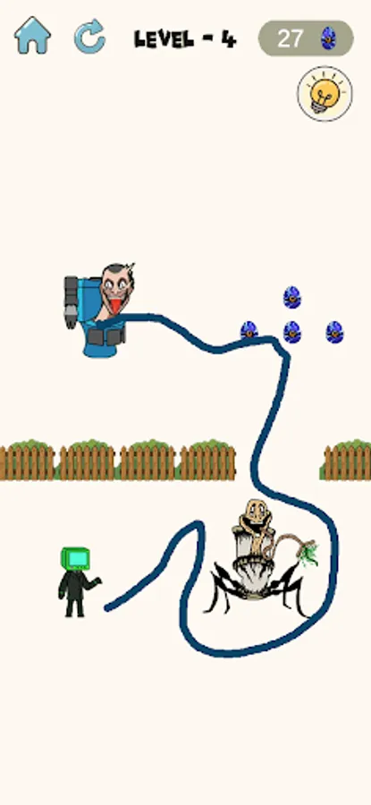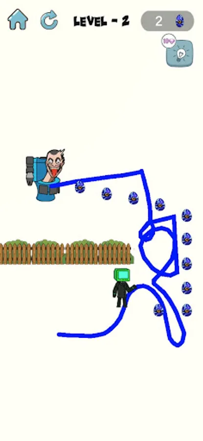 - Click on the Skibydi Rushs to start drawing lines to go home