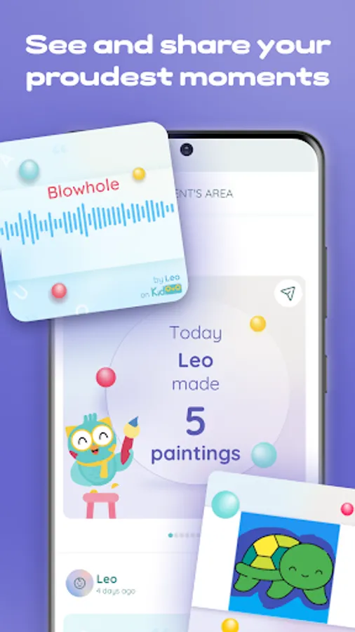 The world is amazing. Children learn every day. At Kidovo you see new words and concepts your children learnt. Replay them back and share these moments with your loved ones too.