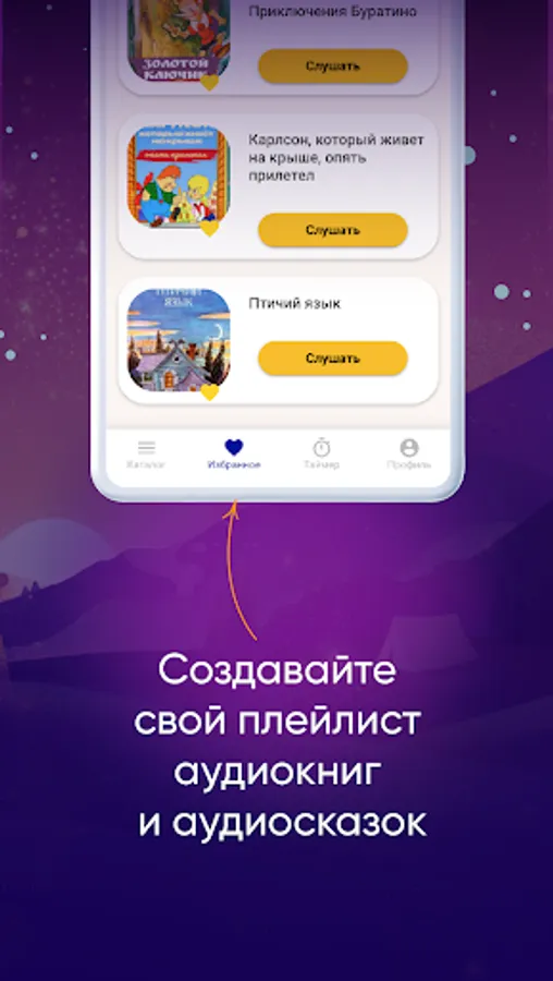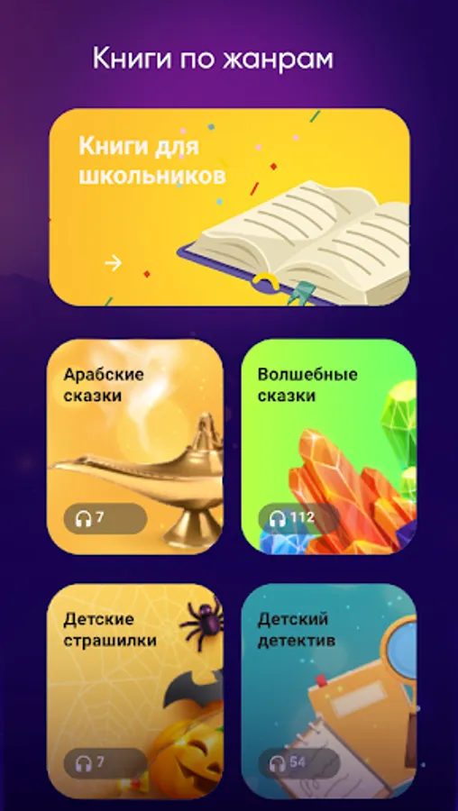 Our audio application contains audio fairy tales from all over the world in Russian. We divided fairy tales, books, stories and radio plays (radio shows) by genre: