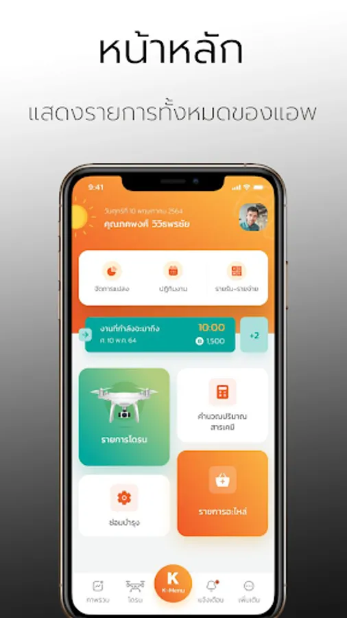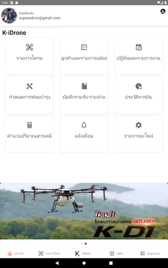 Kubota IoT Intelligence Drone (K-iDrone) or Kubota Integrated Intelligent Drone It is a tool to help connect data from the drone to the customer's phone or tablet. This will make it easier for clients to plan and manage their work with the help of employer records. Calculate the cost of each job Including the supervision and planning of ordering spare parts for the drone from your nearest dealer and service center.