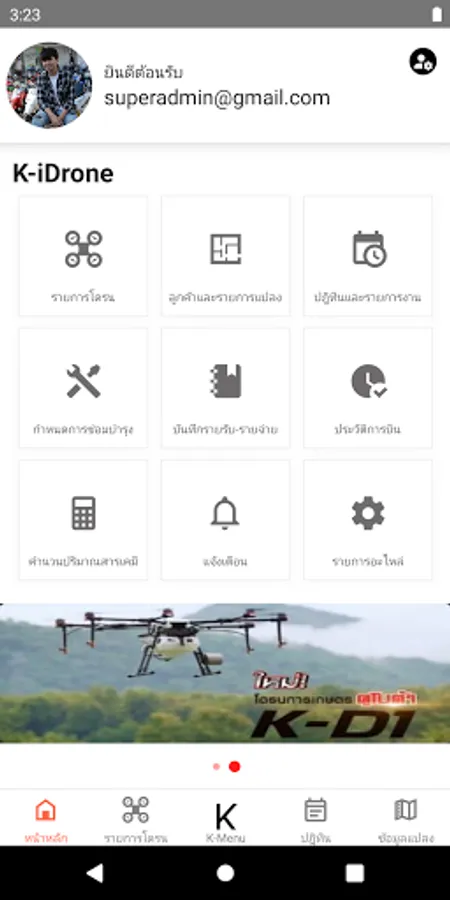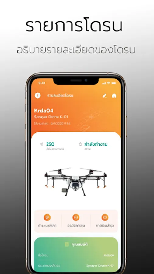 - List of drones in possession It is easy to check the working status of various drones even if the drone is not with you. And can check the latest location of the drone as soon as you want to know. as well as being able to view the history of the drone's work in the past both flight hours flying area and flight operator as well as being able to check the maintenance history of each drone