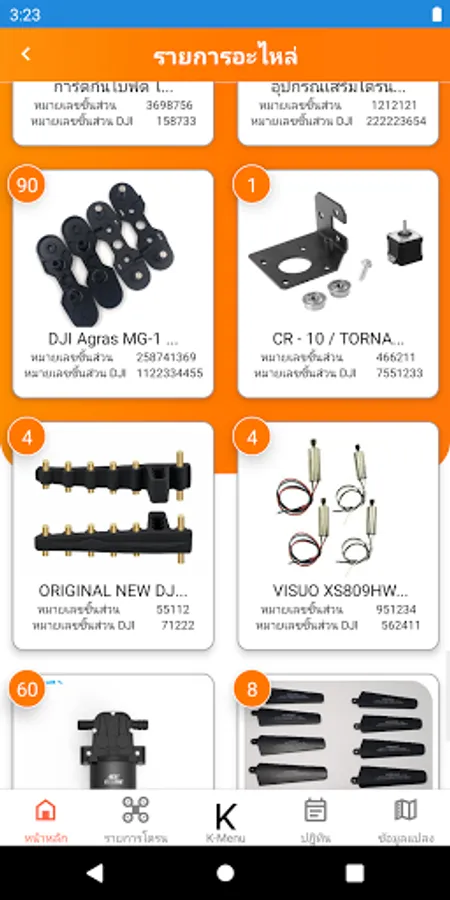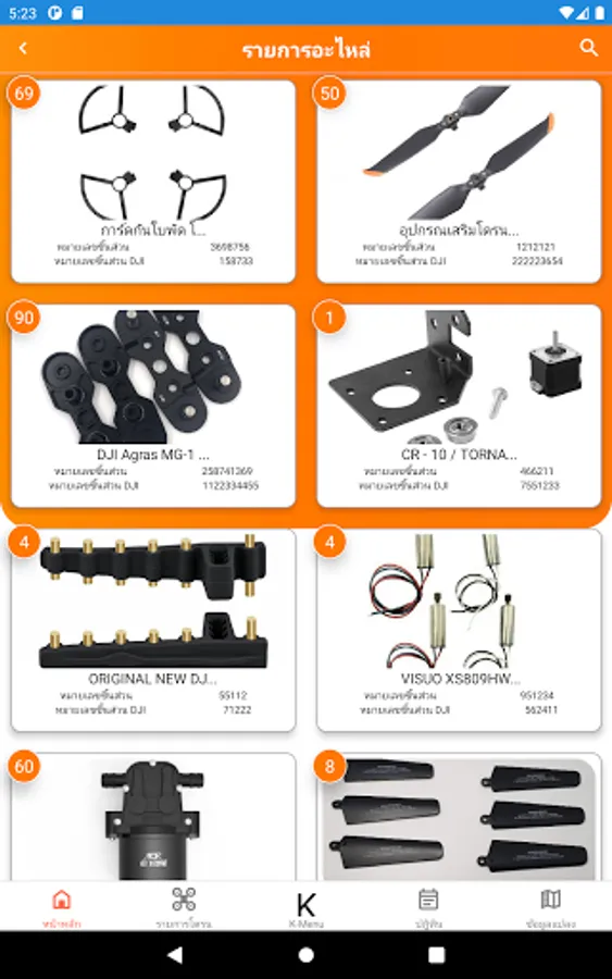 - Replacing drone parts is no longer a hassle with the Parts List function where you can check the product and plan to order drone parts from your dealer or Kubota center near you.