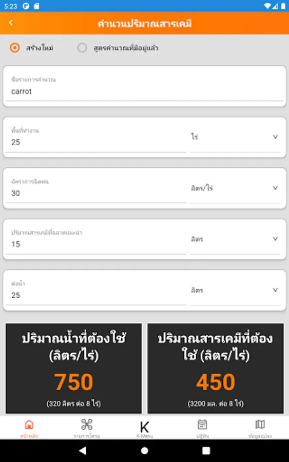 - Easy to prepare chemicals before starting flight work. with a helper to calculate the amount of chemicals Just fill in the information as the product states on the label. , spray rate and area size of plot The system will calculate the amount of substance and the amount of water. including the number of flights the drone will have to run. This makes it easier to prepare and plan your flights and save you more time. You can also save the formulas of frequently used chemicals. For convenience and ease of use next time