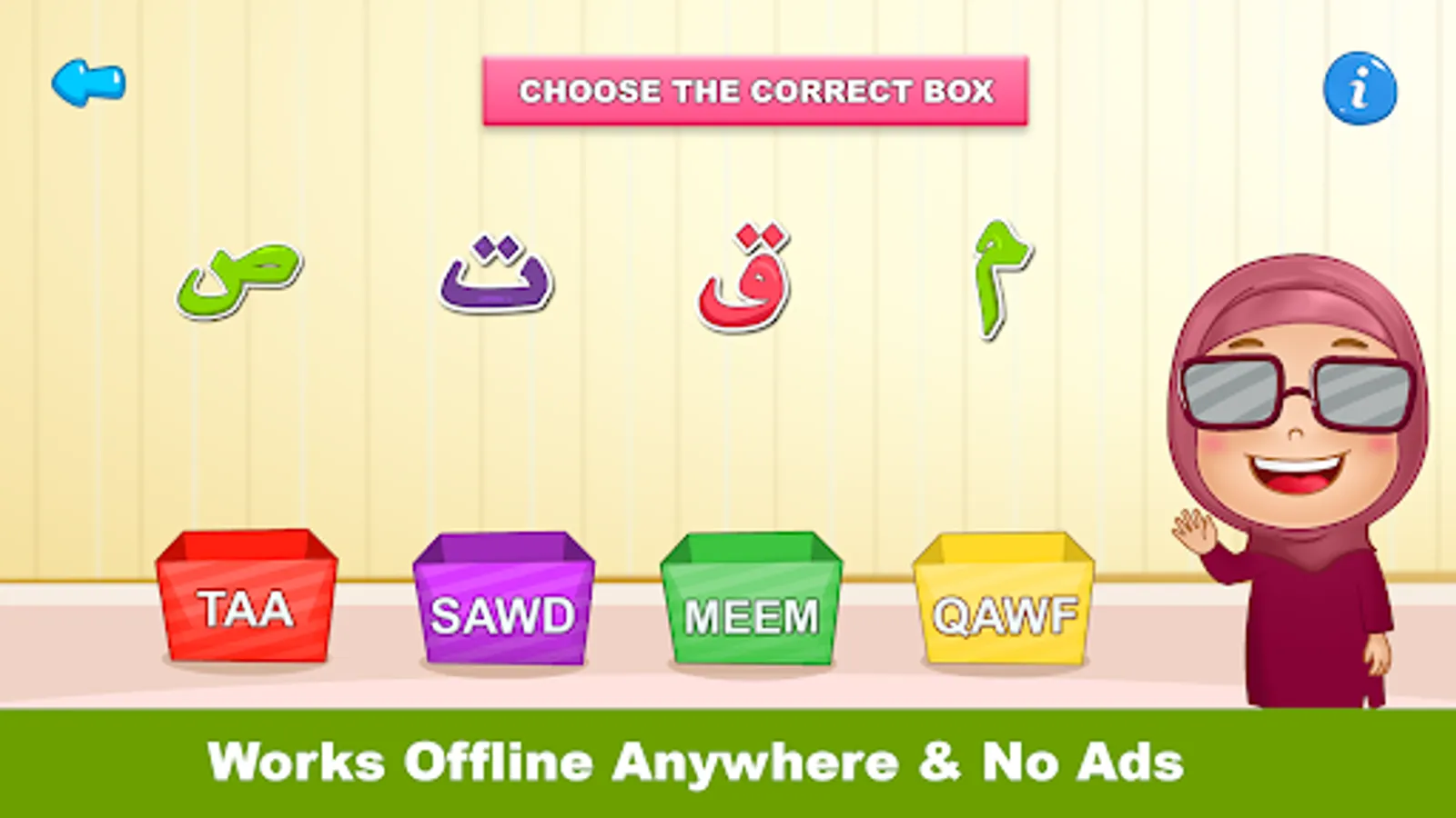- Colorful illustrations, engaging animations, and educational mini-games that make learning and recognizing Arabic letters exciting and memorable
