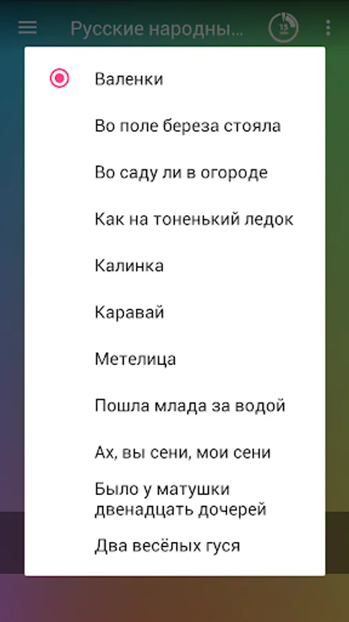 The collection "Russian folk songs" includes the following children's songs for kids without the Internet: