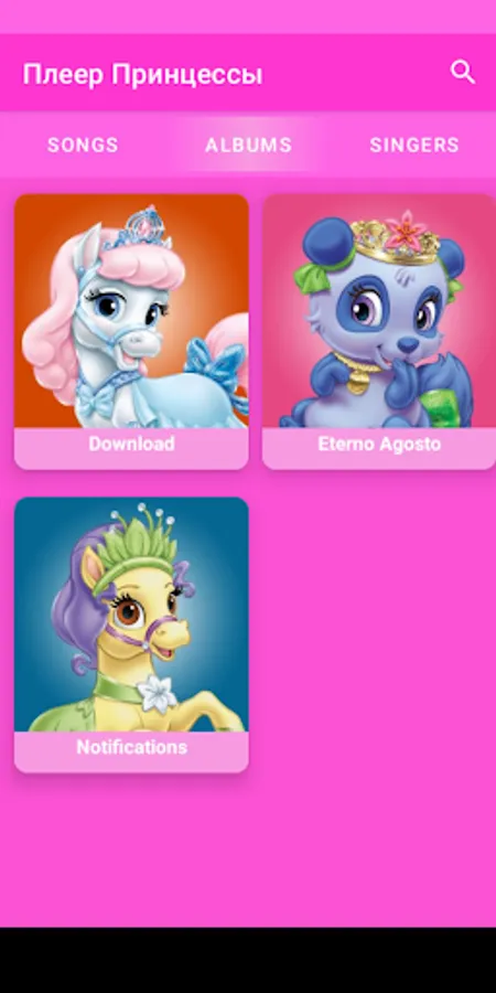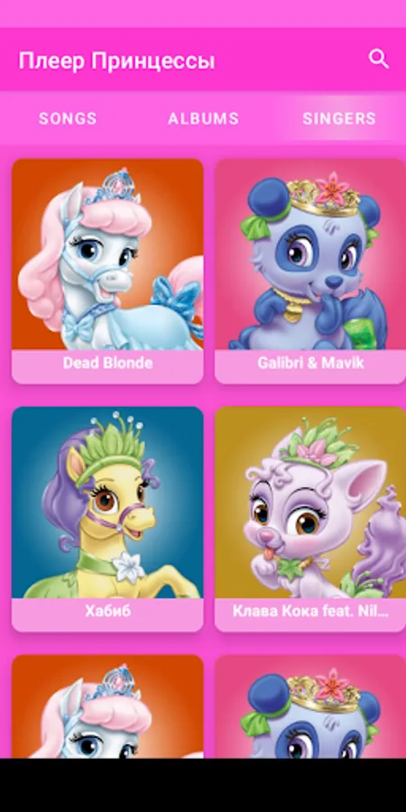 простой и удобный в использовании музыкальный плеер с ярким красочным дизайном позволит девочкам-принцессам слушать любимую музыку