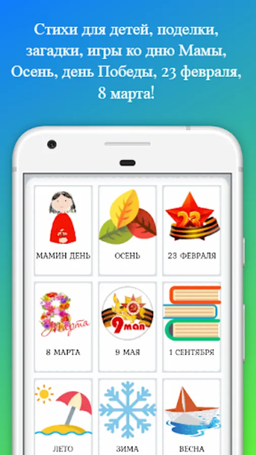 An informative and entertaining application on the theme of the holiday Mother's Day, Autumn, May 9, February 23, March 8!