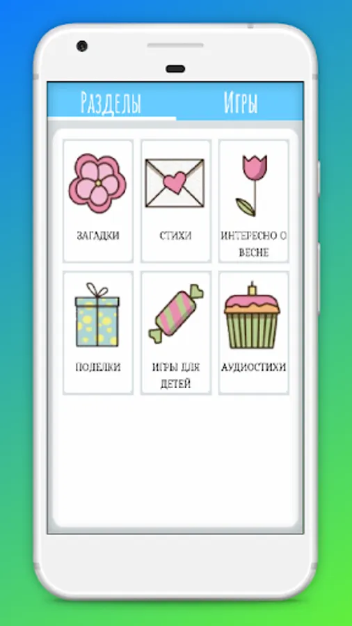 - Riddles - a section with riddles dedicated to the chosen holiday. All riddles with answers are designed for reading by an adult.