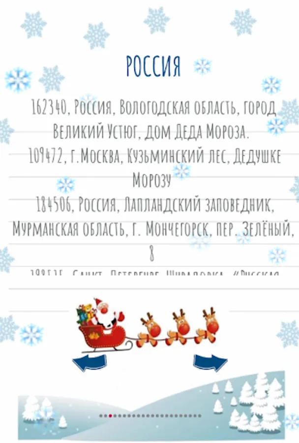 7. Write to Santa Claus - this section contains addresses of Santa Clauses from different countries! Write a letter with your child and you will be answered!