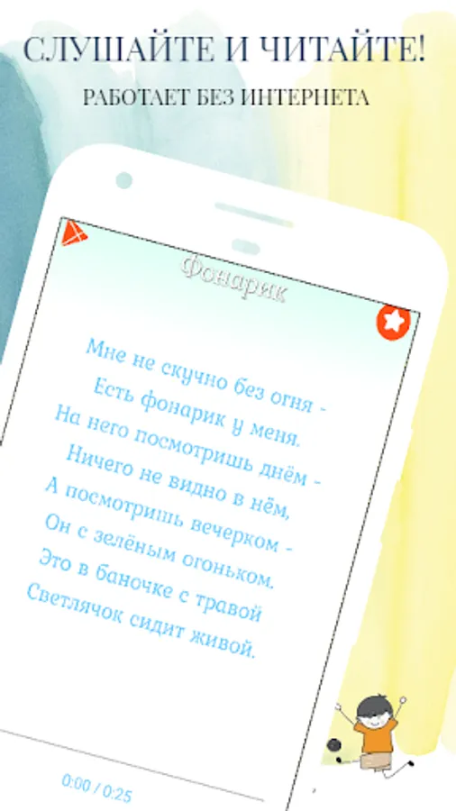 Teddy bear, Goby, Elephant, Airplane, Horse, Truck, Ball, Bunny, Kid, Ship, Checkbox, Flashlight, Frog, Sparrow, Kitten, Drum, Rubber Zina, Grimy girl, Roaring girl, I grow up, I grew up, Teddy bear ignorant, In the theater, To school, Geese-swans, Playing in the herd, It was in January, Assistant, Tamara and I, Capricious ruffs, Uchi-uchi, Calls, Letter P, Lullaby, Glasses, Two snowballs, Painter and many others ! In total - 65 poems!