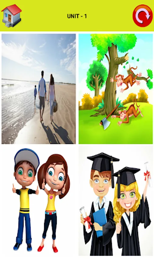 4- The fourth part: it consists of reviewing the words at the end of each lesson by listening to the word and choosing the correct image to confirm and confirm the memorization process.