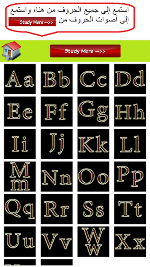 2. Part II: (Study More), deals with the letters with three pronunciation of their ballots illustrative examples of each character sound and image.