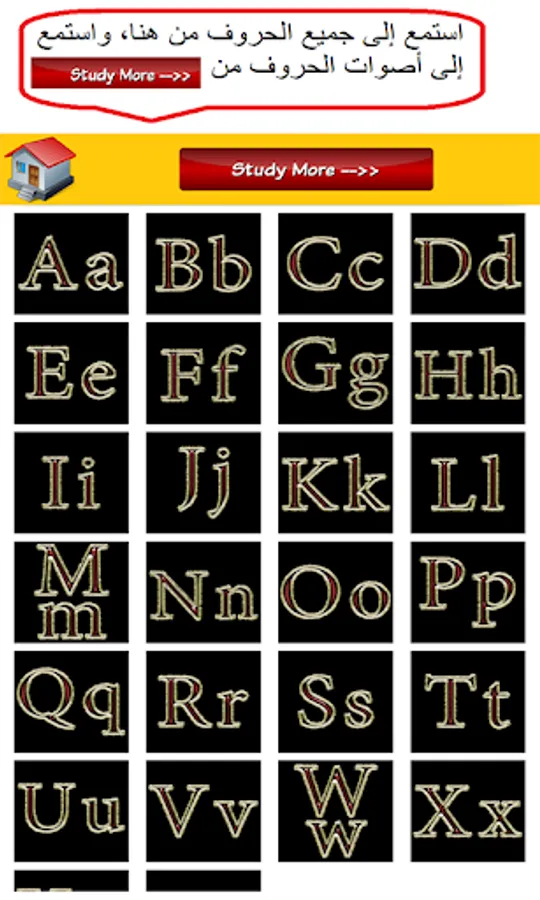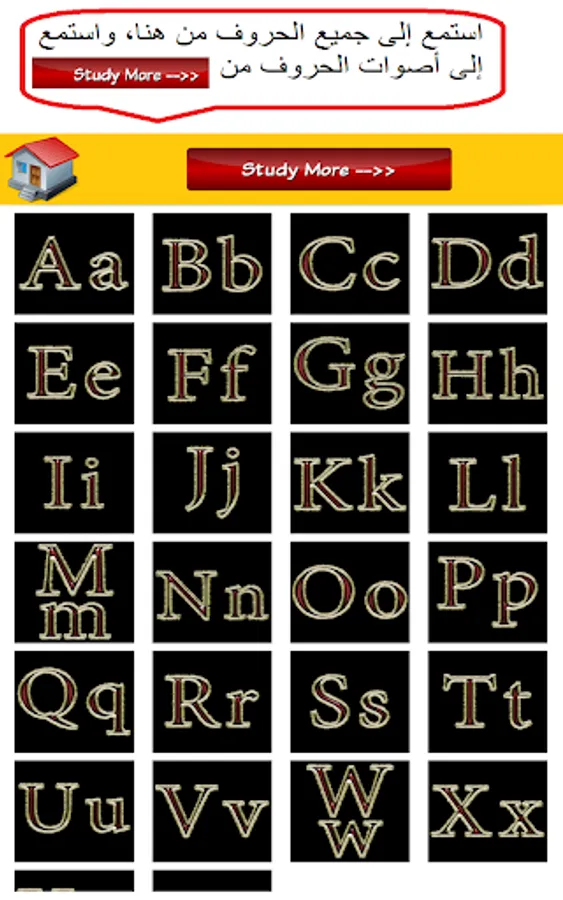 2- The second part: (Study More), deals with the pronunciation of letters with their sounds, with three examples of each letter with sound and image.