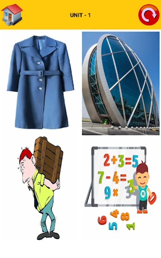 4- The fourth part: it consists of reviewing the words at the end of each lesson by listening to the word and choosing the correct image to confirm and confirm the memorization process.