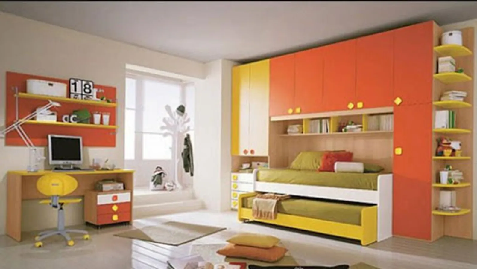 Next in kids bedroom designs ideas we have the topic of color. Now, this is a critical issue because usually, most parents go berserk when selecting colors for the room. However the best choice would be a primary color, nothing too loud but at the same time not to dark enough. A sky blue or a baby pink color would be really nice on the walls as well as on the eyes of your child.