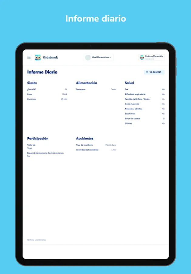 Kidsbook allows kindergartens to speed up the recording of daily activities carried out in the Educational Center and notify their families in real time.