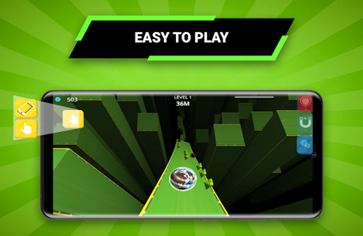 here are different boosters and props that can be used by spending your collected gems. Players can unleash useful boosters such as diamonds collecting magnet, gems multiplier, and shield against obstacles.