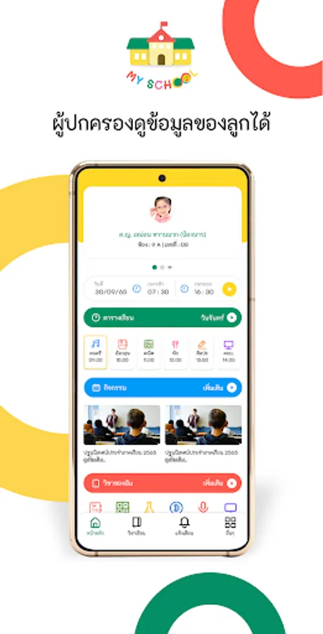 - Able to send student information, classes, teaching schedules, homework, as well as results of daily reports, health reports for parents to know