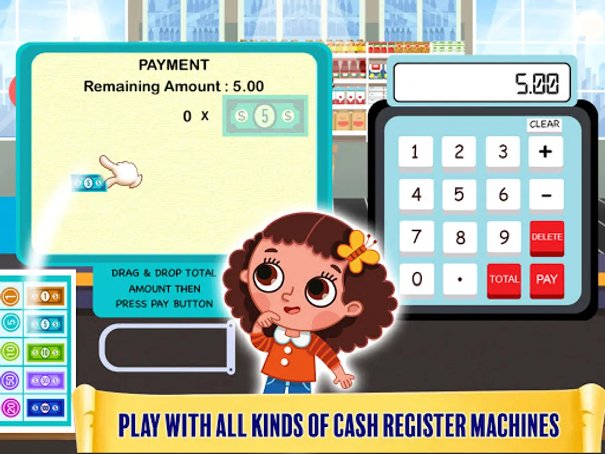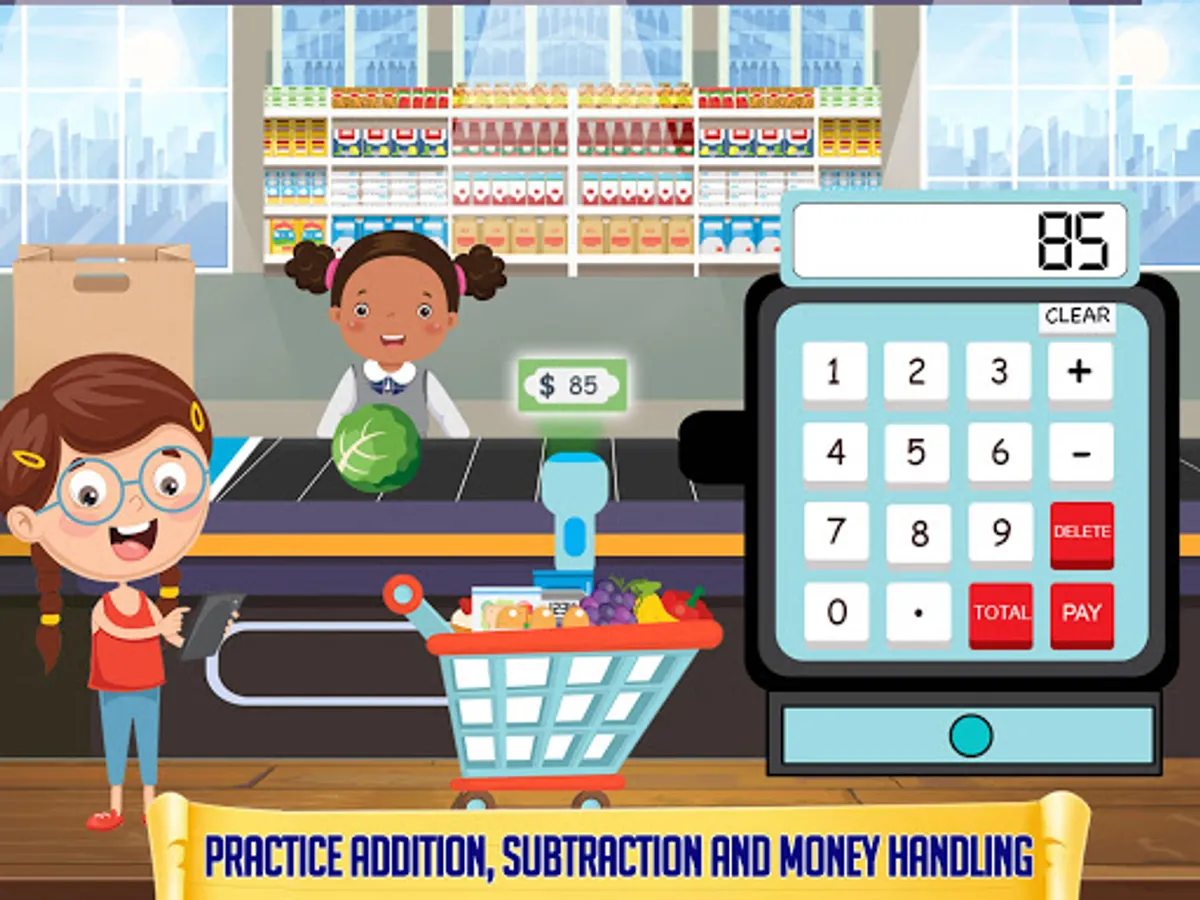 Be a cashier in your very own grocery store. Simulation money management game that improves math skills, cash handling and calculation in children. A cashier game with cash register which teaches how to operate the cash register in a store and serve the customers in time. Your dream of becoming Store Manager & Cash Register will finally come to life!