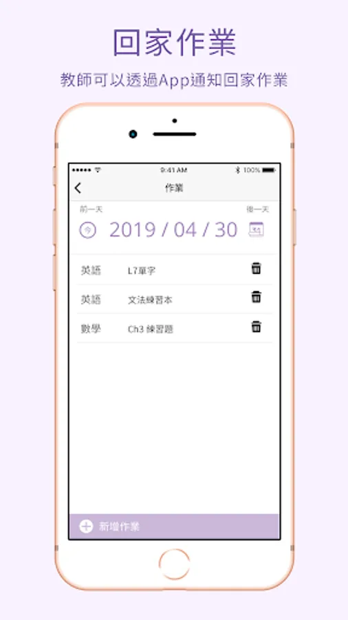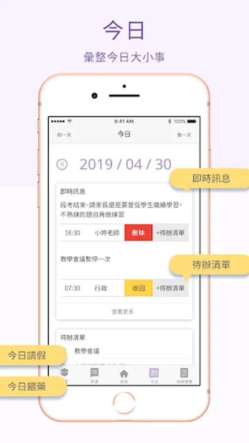 8. 訊息:提供校方發送即時訊息通知學生家長。