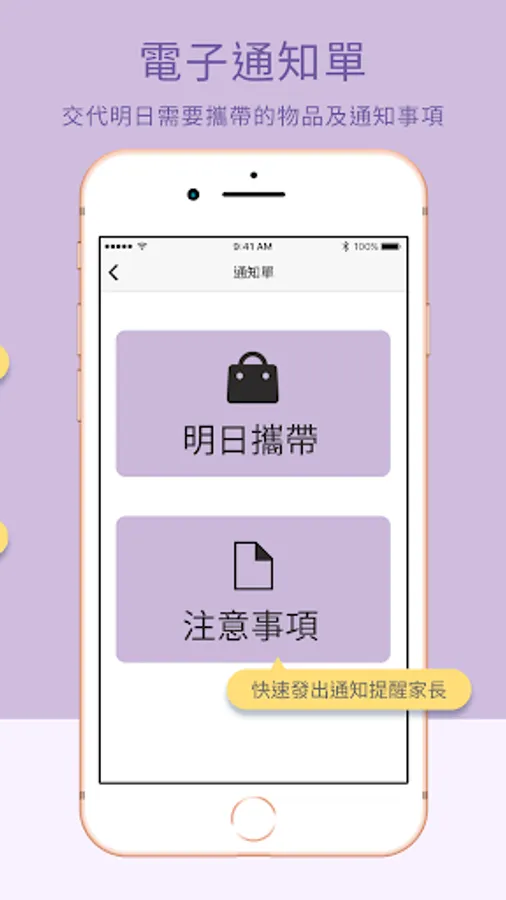 2. 通知單:讓校方快速填寫學生的明日應攜帶物品、注意事項