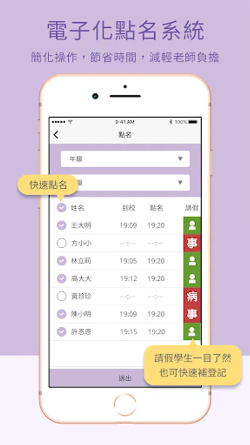 7. 離校通知:家長可以在接孩子下課時提前按下預約鍵,減少等候時間。