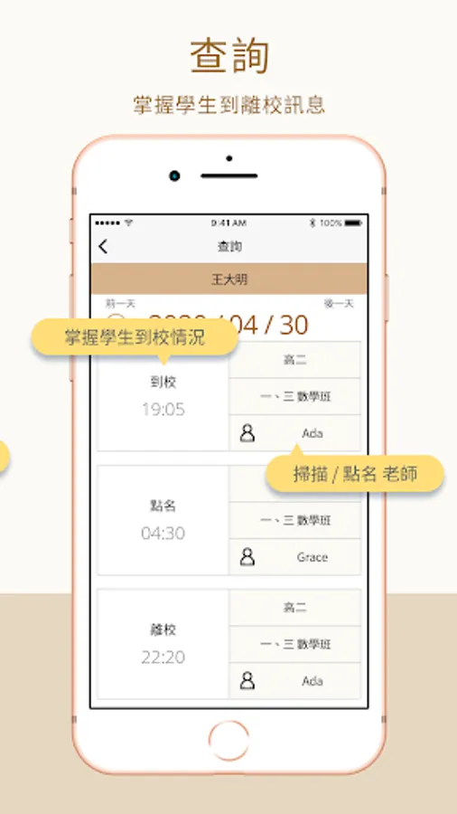 5. 到離校掃描:讓家長及校方都能掌握孩子的動向。