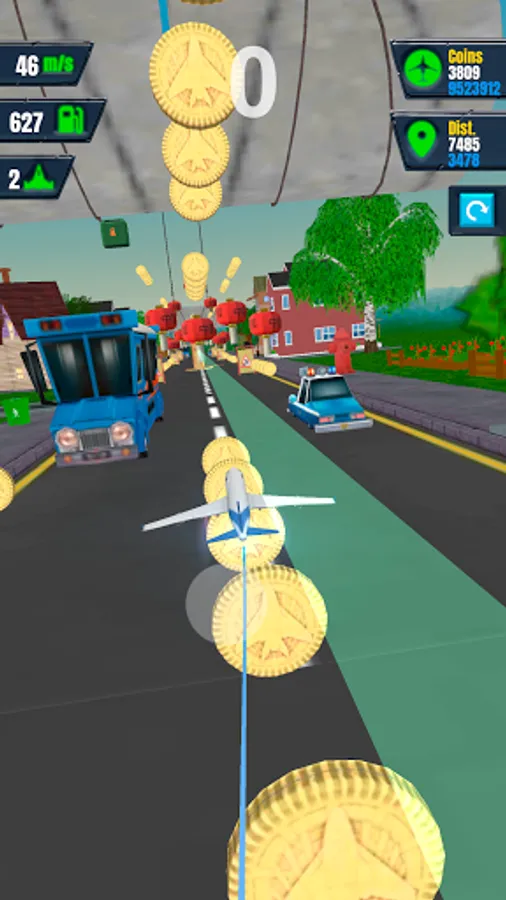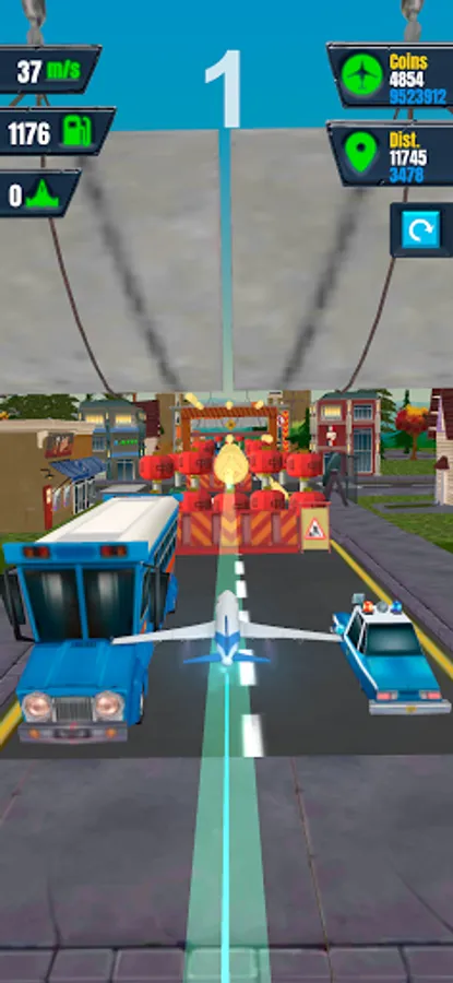 The game starts when the plane leaves the window and heads into the city. Run your aircraft safely over the busy street. You can choose the direction of the plane and its height. Do your best and try not to hit the obstacles during your flight! Every strike against them reduces significantly your speed.