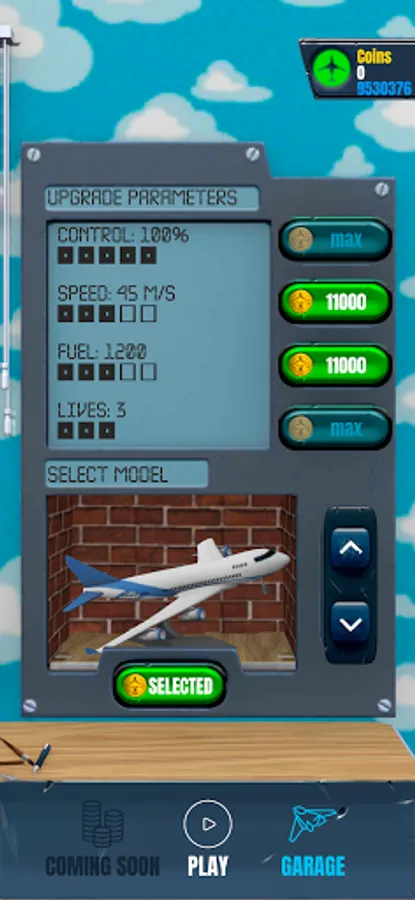 Powerful engines influence the speed of the plane. Choose from two engines to none and fly at a speed that feels comfortable.
