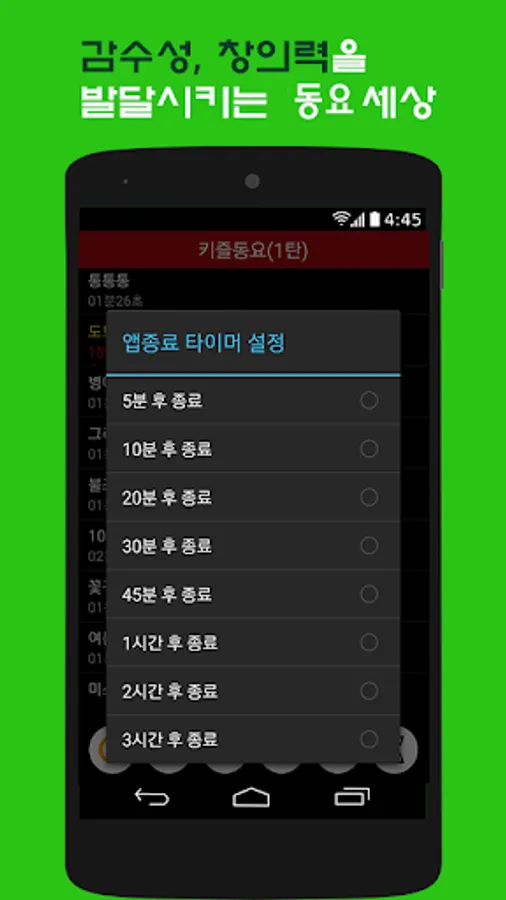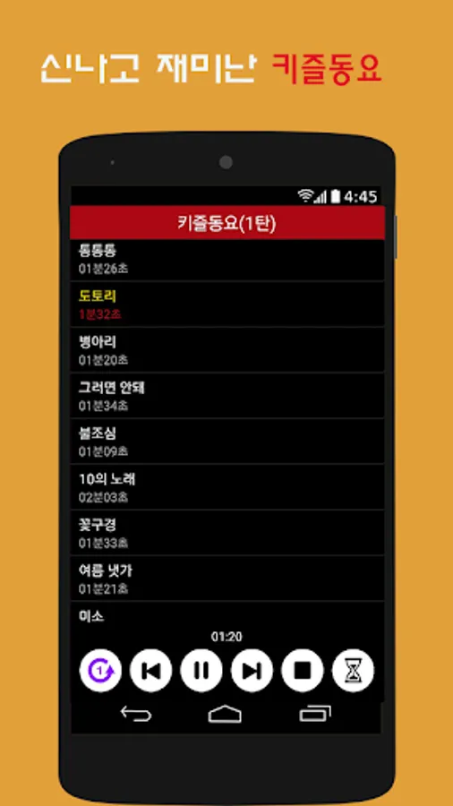 Rather than just singing songs, children like to shake or tap a simple rhythm instrument to a fixed beat. For example, if the beat fluctuates quickly, you can bounce the rubber ball or move your body to express the beat. For slow fluctuations, you can shake your scarf or ribbon strap and express your body slowly. It is a good way to learn the rhythm by interacting with the mother and child clapping, which is called a nursery rhyme with a lot of onomatopoeia and diametics, such as 'Cessethe,' 'Fondant Fongdang', and 'Blue Sky Galaxy.'