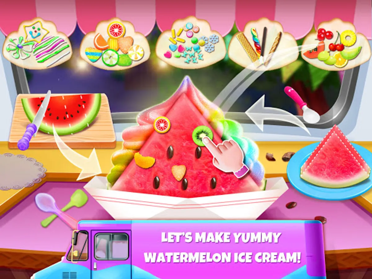 - Take different cooking modules for fish ice cream, watermelon ice cream, rose ice cream, peanut butter cup ice cream and classic ice cream