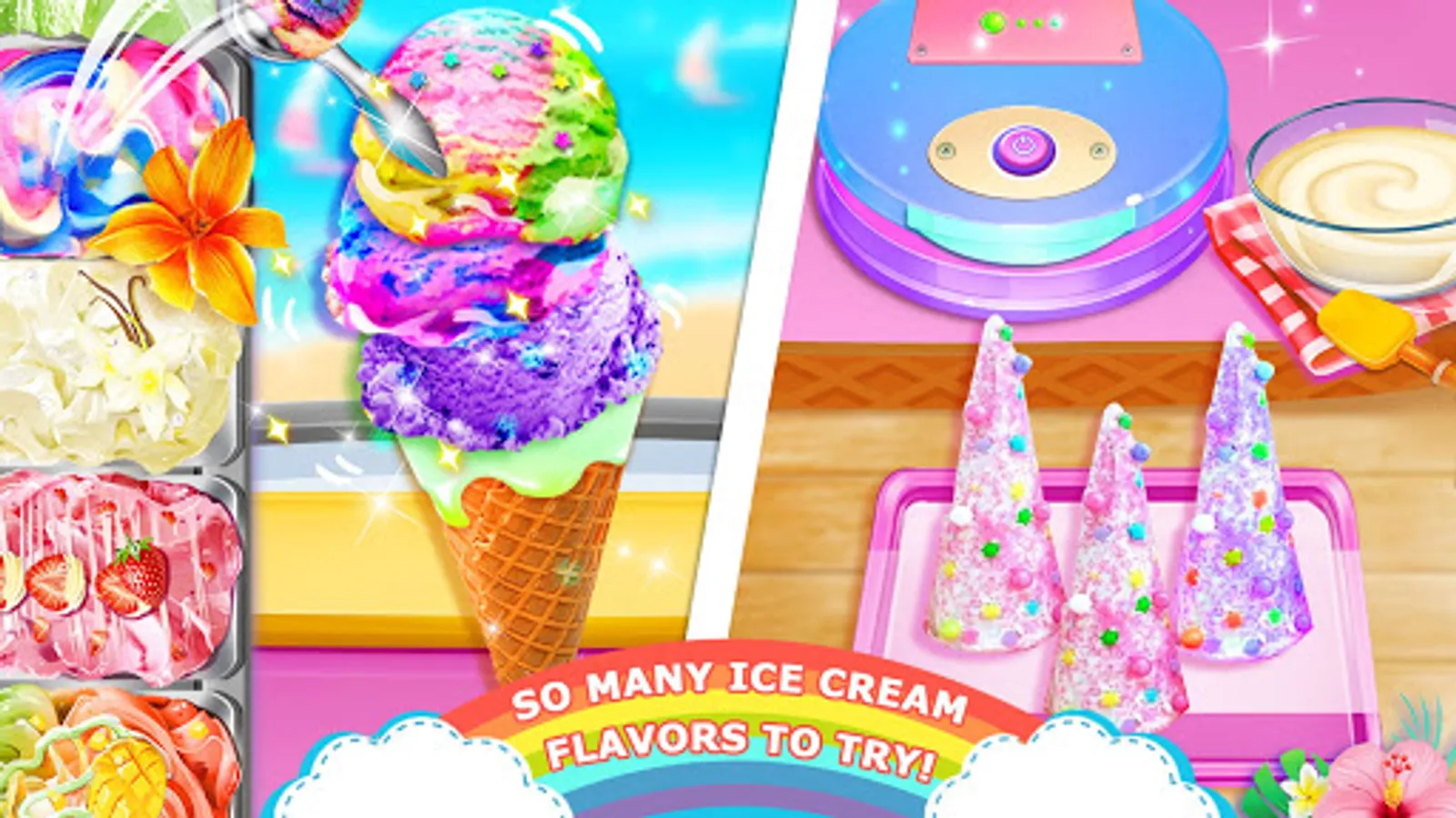In this game, you can cook up yummy frozen desserts such as unicorn egg waffle ice cream, unicorn ice cream taco, cotton candy ice cream cake, unicorn boba milk-tea, unicorn snow cream, unicorn light bulb lemonade, unicorn rainbow smoothie bowl, and so much more!