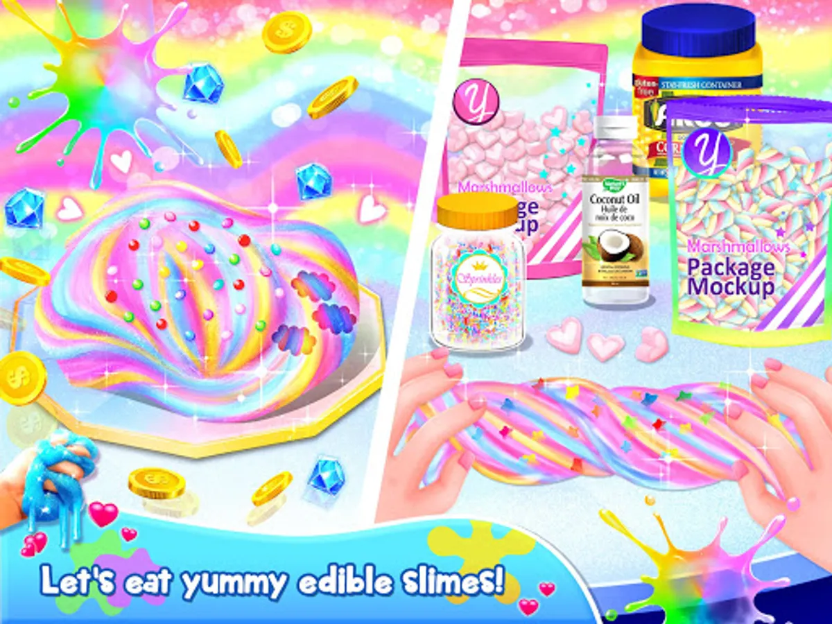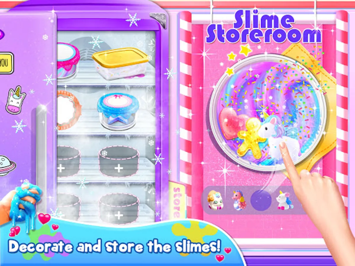 - Decorate your slimes with beautiful sprinkles, glitters, and unicorn toys
