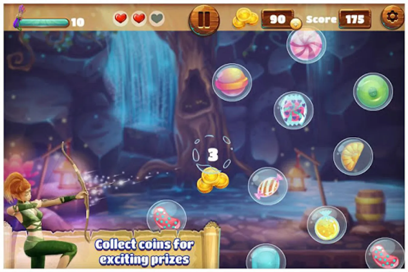 Pull up the bow’s rope, release it gently and there goes your arrow piercing all the sweet bubble filled candy frenzies. Have the candy popping fun the way you want.