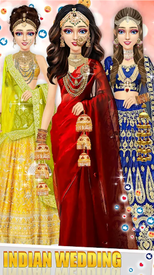 Every bride wants her wedding day to be a stylish dream wedding. These Indian brides need your help to make their special wedding day the most memorable and royal by stunning and dress up the gorgeous bridal supermodel style in this makeup games for girls. It's your time to use your fashion designer sense to make stylist bride and groom. Let's go and start the ultimate fun of Indian wedding lehenga and dress up games for girls. Girls look very beautiful and stunning dress and make up for stylish Indian bridal girl.