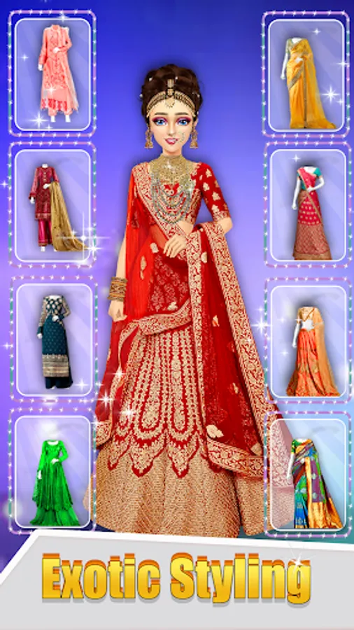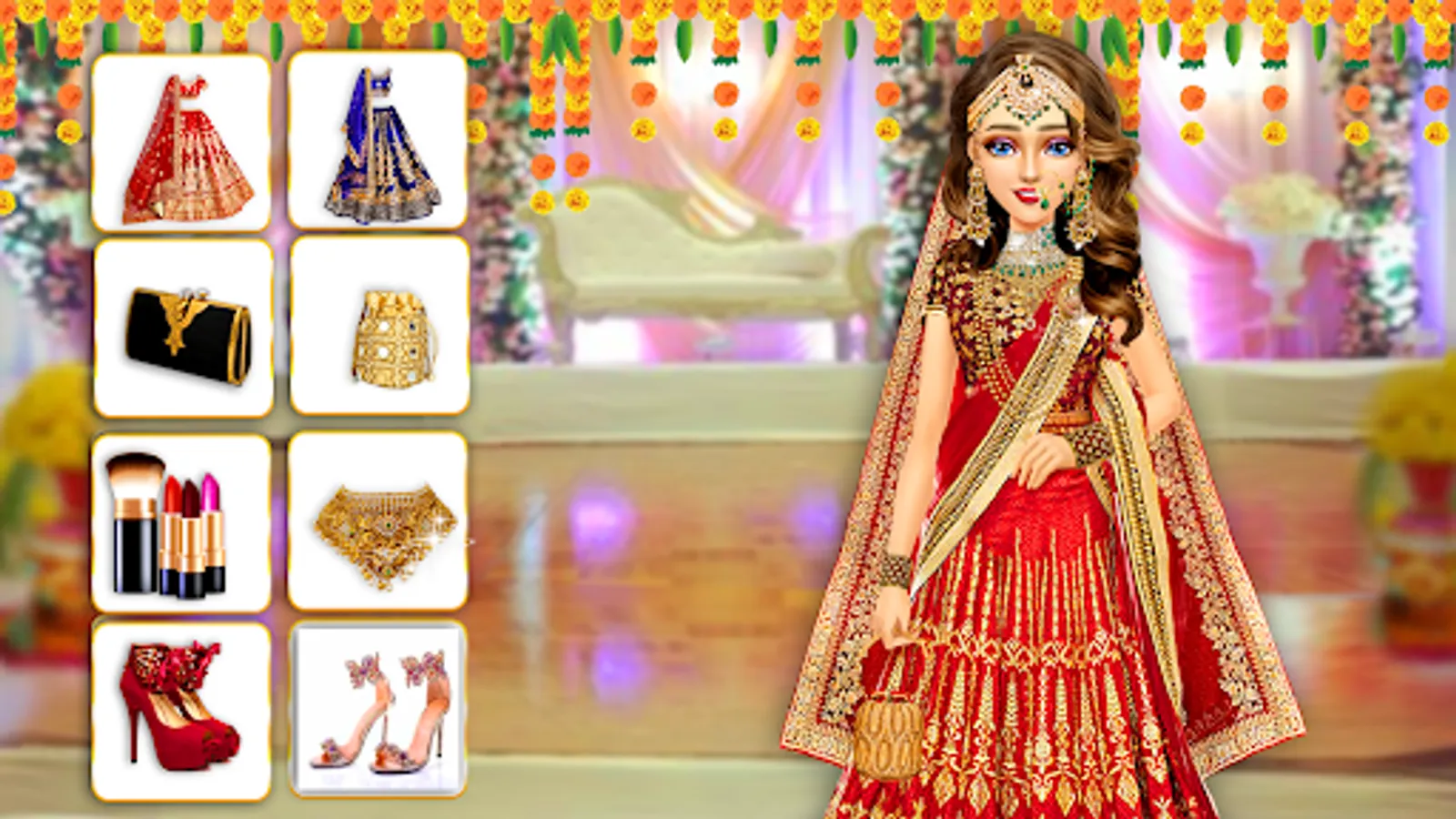Indian wedding lehenga stylist game has the gameplay of makeup and dress up games for girls. You can enjoy Indian wedding decorations and wedding dresses as a super stylish salon beauty makeover with full dress and makeup. Royal princess wedding time with stylist dress up and makeup games for girls. In this princess wedding lehenga dress up games for girls, enjoy the best Indian wedding makeup make up that bride desire.