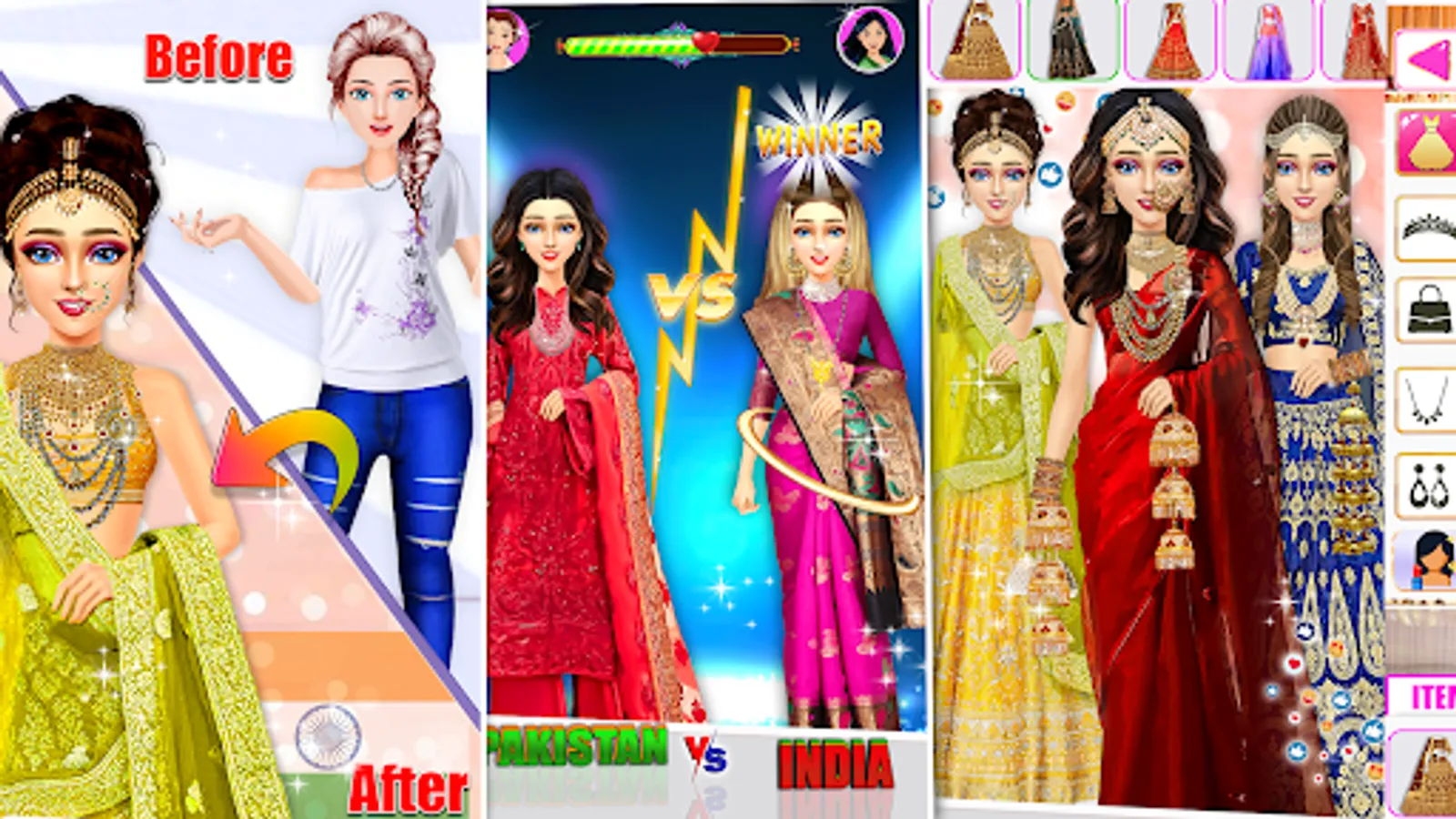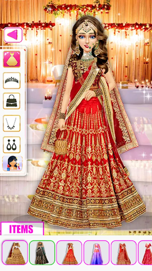 Show your real wedding dress lehenga designer skills in this fashion wedding dress up and makeup games for girls and make Indian brides beautiful and elegant royal princesses for the big wedding day. Girls dress up in the world's best fashion makeup and Indian wedding lehenga games using fancy and beautiful Indian wedding dresses like lehenga, choli, jeans and other beauty accessories. Beautiful brides drive around the world to get dress designs and alterations for various Christian wedding day and Indian wedding day cultural play formal events. Everyone wants to look perfect and attractive for their dream wedding. Use your makeup sense and your brain to make royal girls wedding dress for princess games because this is the best Indian wedding bride princess wedding lehenga and makeup games for girls.