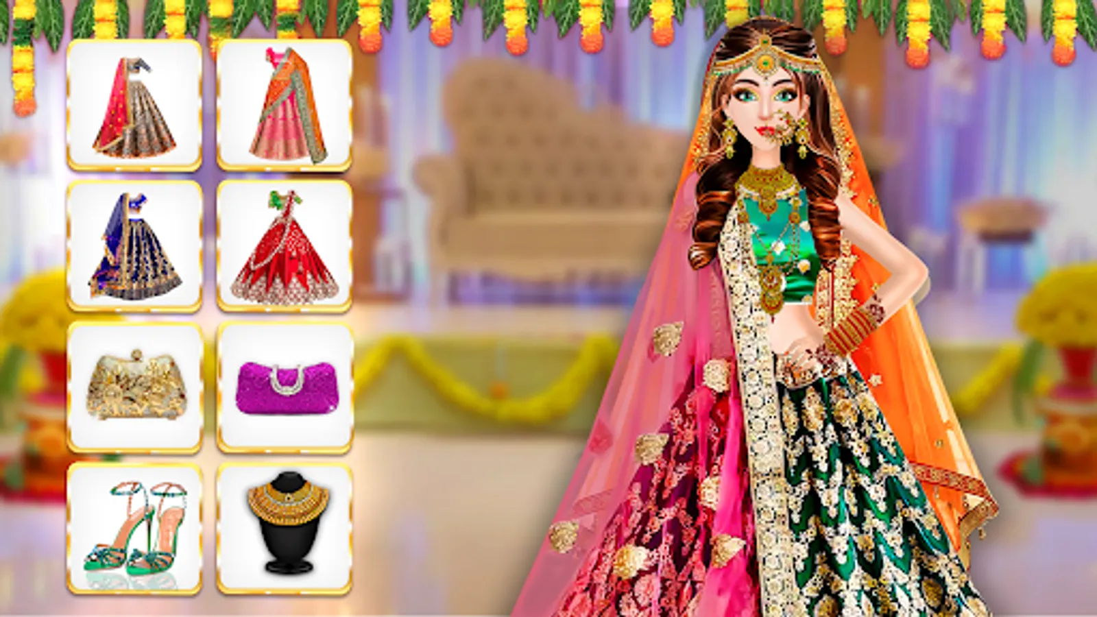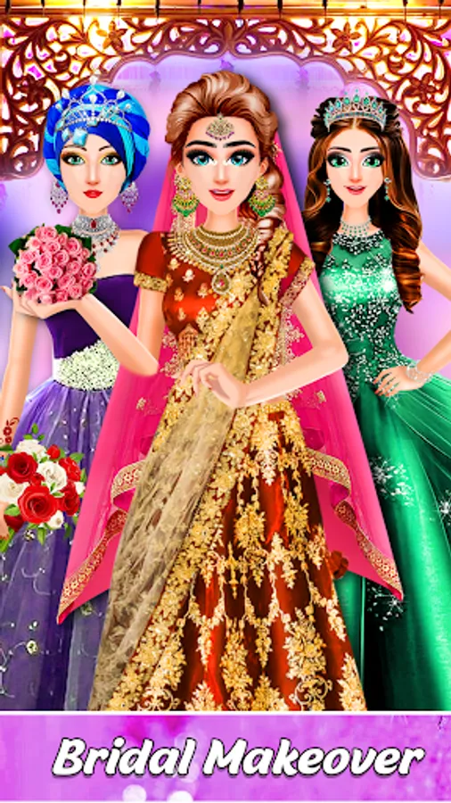 Indian bridal dress is a beautiful makeover super stylist for fashion wedding games for Indian wedding makeover girls. Best girls wedding games becomes a royal wedding when the Indian bride dress, dress-up and tie dye makeup is used by a fashion designer wedding💒 games. Wedding Makeover Girl Games is a girls wedding fashion games for girls to choose Indian wedding dresses, jewelry, acrylic nails, makeup and accessories, and hair cut bridal wedding games makeup artist to make up look in Indian wedding dress up games🎮