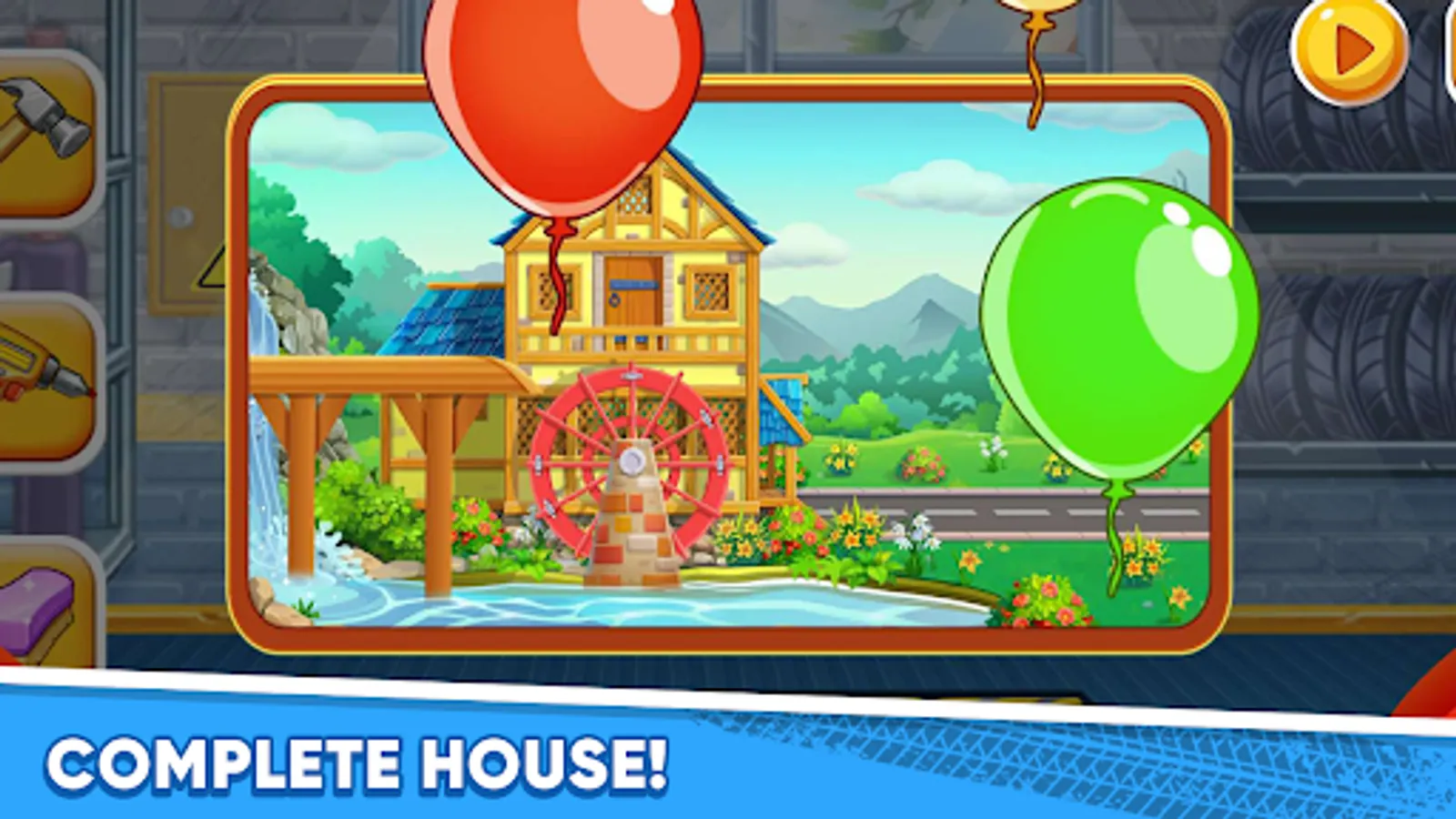 The game includes a lot of different vehicles such as cargo trucks, concrete mixers, road rollers, crane trucks... And a lot of constructions need to be completed such as houses, highways, bridges, fountains, dams.