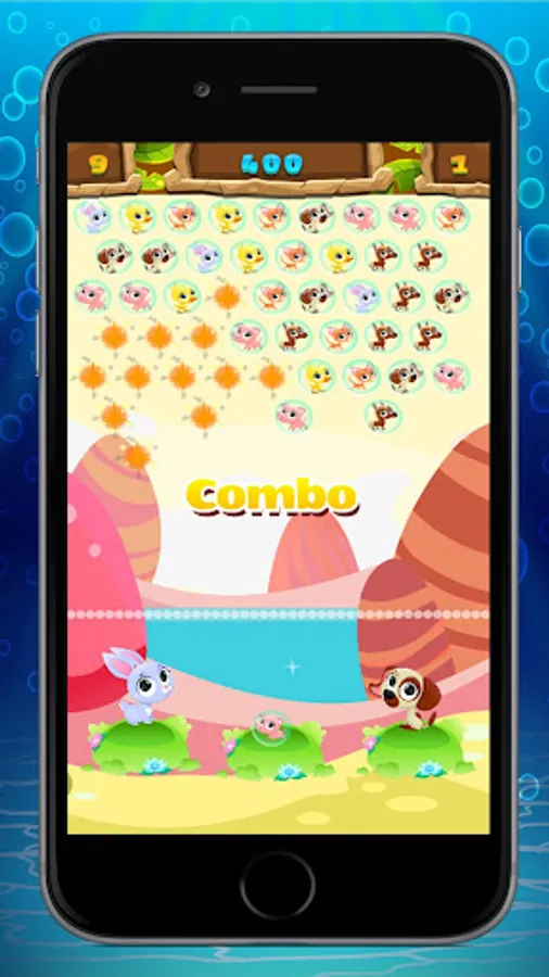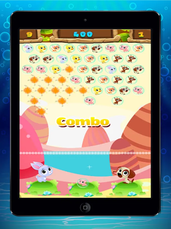 * Bomb all the pet in bubbles and rescue pet on the screen to level up.