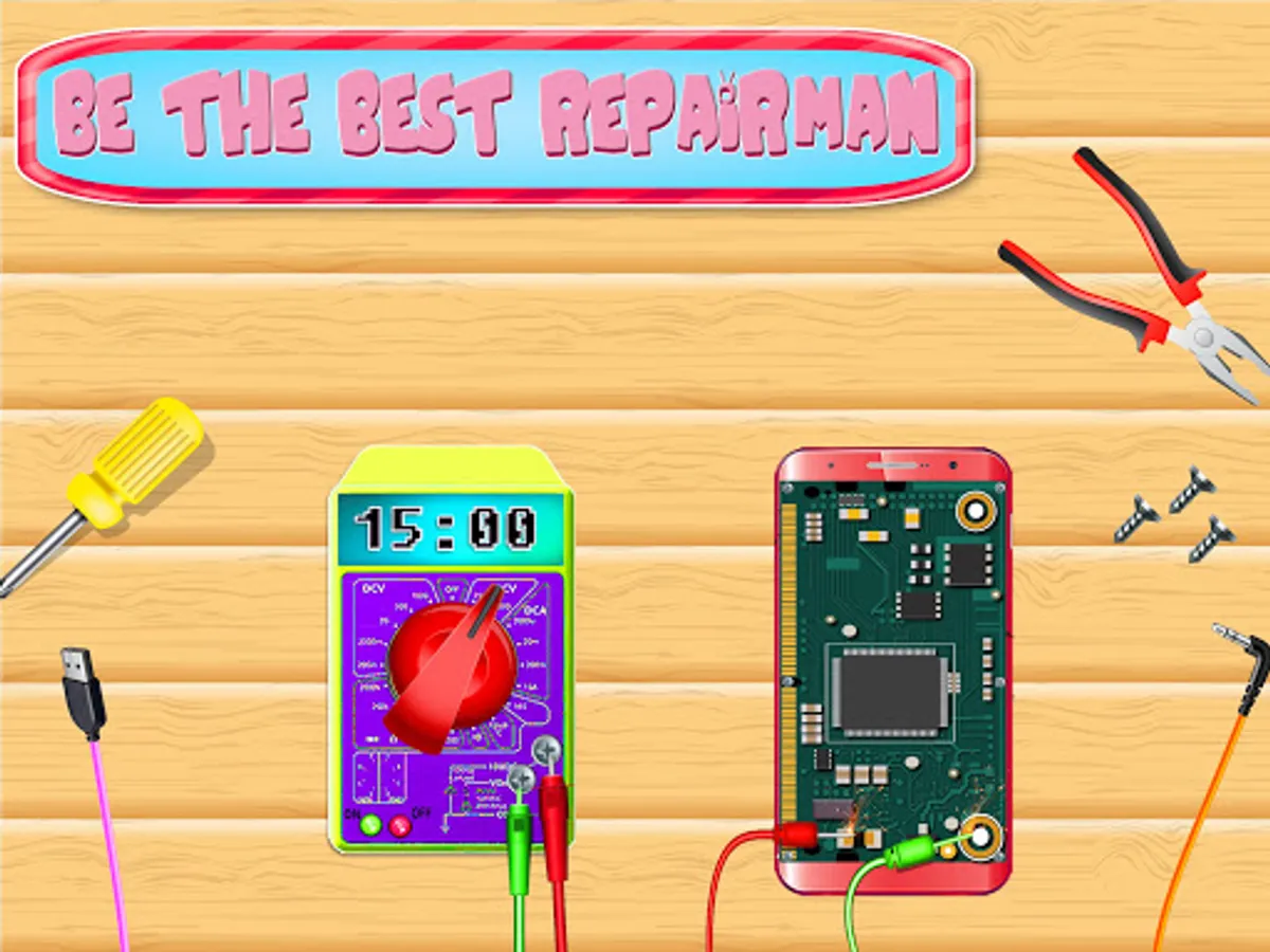 Open up the cell phone fixing store and start getting cell phones from customers across the city supermarkets. Every mobile have multiple defects so act like a pro mechanic to identify the damaged part and replace it with new one. Mobile phone repairing and fixing is as much challenging as car mechanic game. Little mechanic! to repair the damaged cellphone, first remove the LCD touch screen of the phone in this repairing games for girls which is available free offline. Use clippers to takeout the touch screen and now use the volt meter to check the phone battery and other chip set parts.