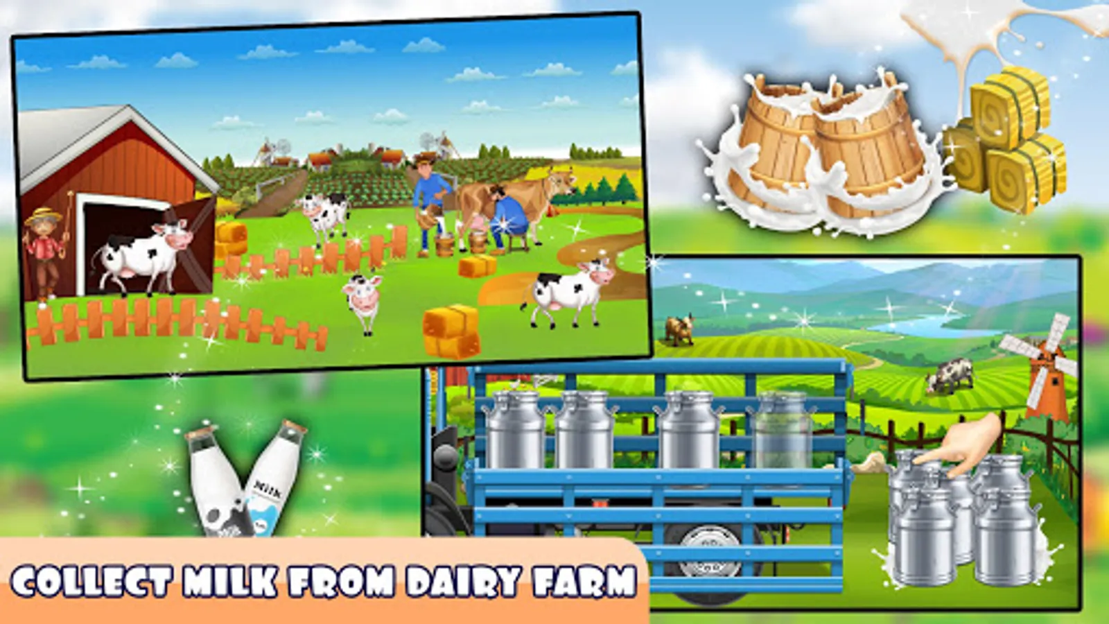 - Multiple outstanding dairy farm milk factory game task to accomplish.