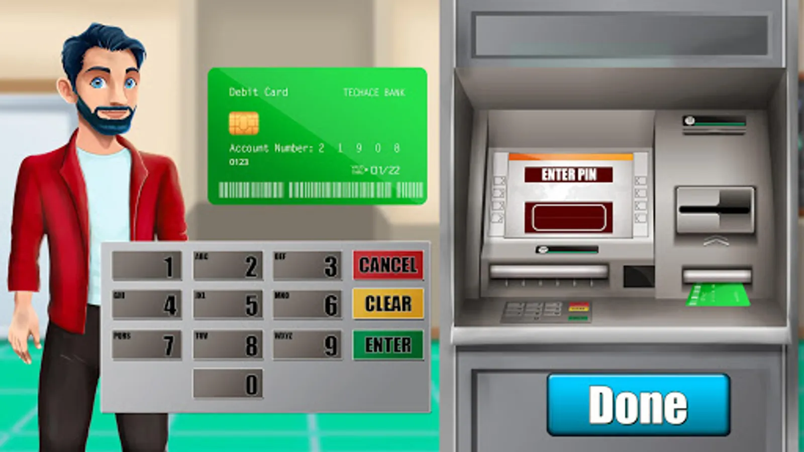 Now play as cash register manager to receive cash money from students and teachers. Work like a real city bank manager to receive deposit cash money. Resolve fee issues, collect fines and do enrollment. Learn cash counter process from this time management and cashier manager game. Learn to use ATM machine from putting credit debit card in the machine and enter your ATM code in the ATM machine games. Select virtual bank account nature and enter number. Enter the amount of cash you want to withdraw. Take the money from the ATM cashier machine and then take your ATM debit or credit card.