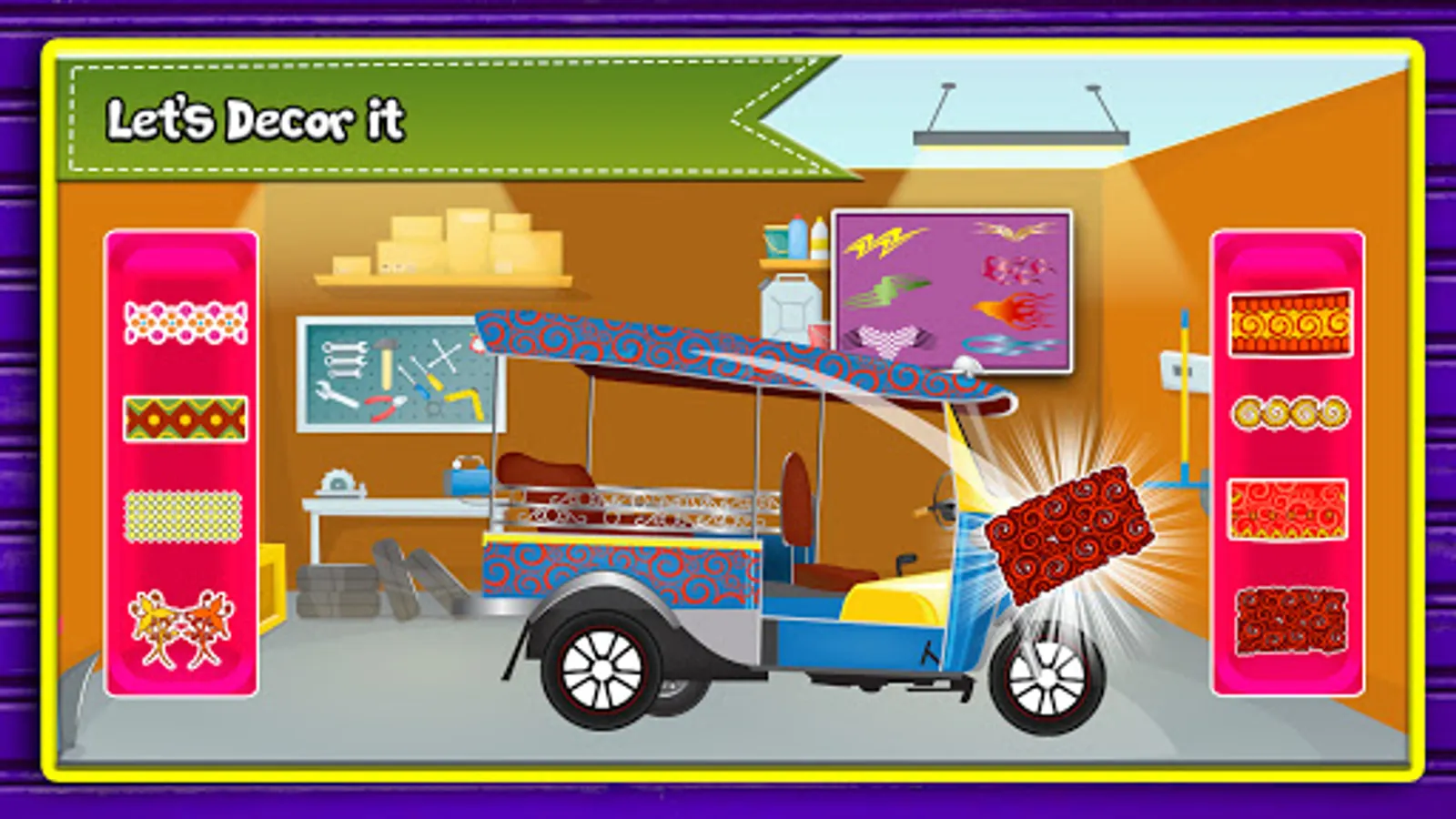 Have you ever decorated the city games rickshaw? Pick your best tools in this auto mechanic simulator games to build tuktuk driving simulator. Become a tuktuk and auto rickshaw manufacturer! In these modern rickshaw games, you can select the tires of your own choice and use advanced machines to fix the auto rickshaw engine. In this tuk tuk chingchi rickshaw game, you can be the best manufacturer and pro tuk tuk rickshaw 3d mechanic to start the production in tuk tuk auto rickshaw driving games. This city games rickshaw is easy to drive for auto rickshaw drivers and lightweight public transport. Auto rickshaw drivers are coming to your factory shop and bringing some accidental tuk tuk auto rickshaws and vehicle driving tuk tuk, your task is to modify them and give their auto tuktuk driving simulator a new look, by painting different colors. Use your expert tuk tuk rickshaw 3d repairman skills to solve the auto rickshaw drivers problems and fix the item.