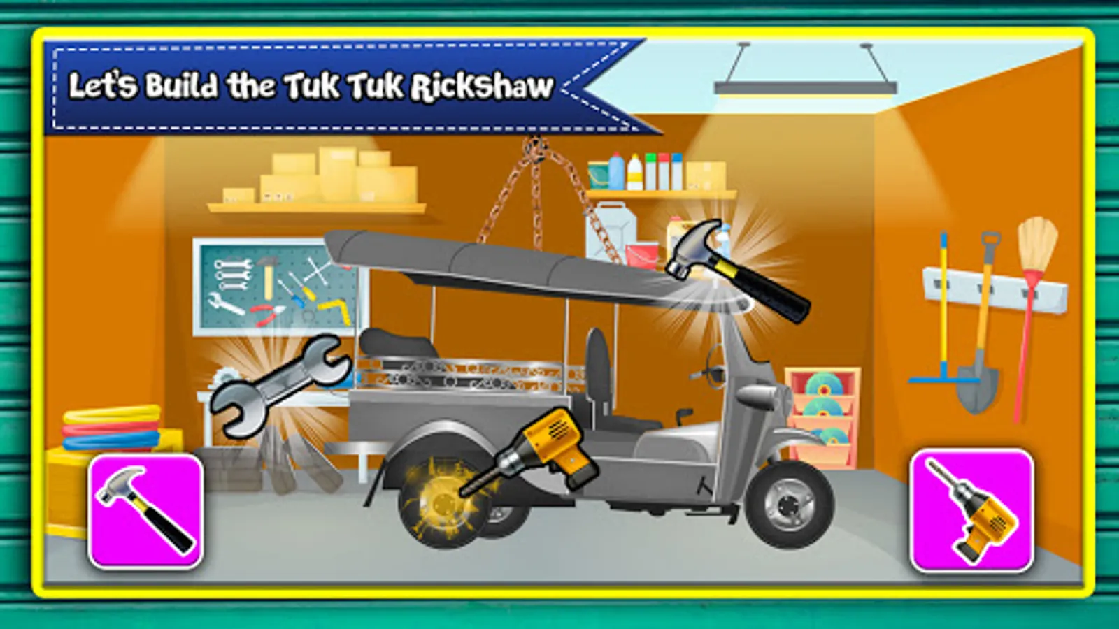 Welcome to the tuk tuk auto rickshaw builder. In this auto rickshaw driving game, you will learn how to design and build the city games rickshaw in your tuk tuk auto rickshaw driving repair workshop. So what are you waiting for start your modern rickshaw games builder shop and receive orders from auto rickshaw drivers, to start building tuktuk driving simulator you have to design & decorate different styles of auto games rickshaw and be the best tuk tuk chingchi rickshaw game mechanic. You have played many tuk tuk auto rickshaw driving games before, but never experienced the auto games rickshaw builder & repair game.