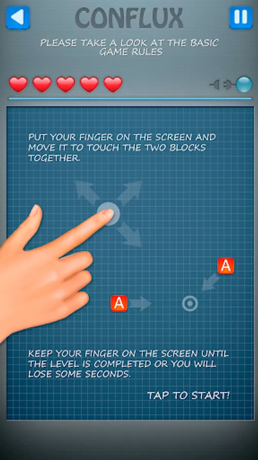 Put your finger on the screen and move it to touch the two blocks together and break them. Keep your finger on the screen until the level is completed or you will lose some seconds.
